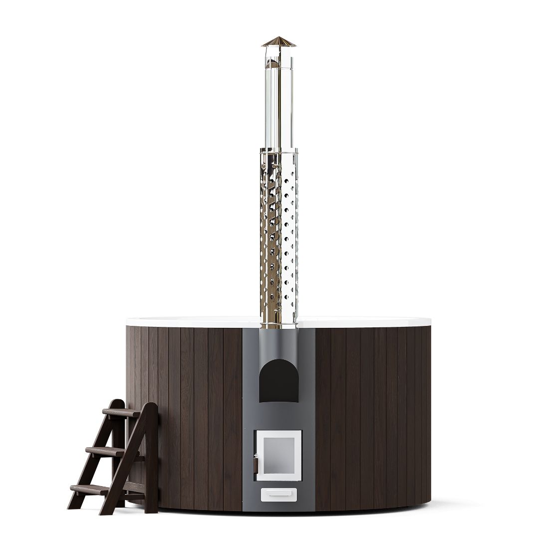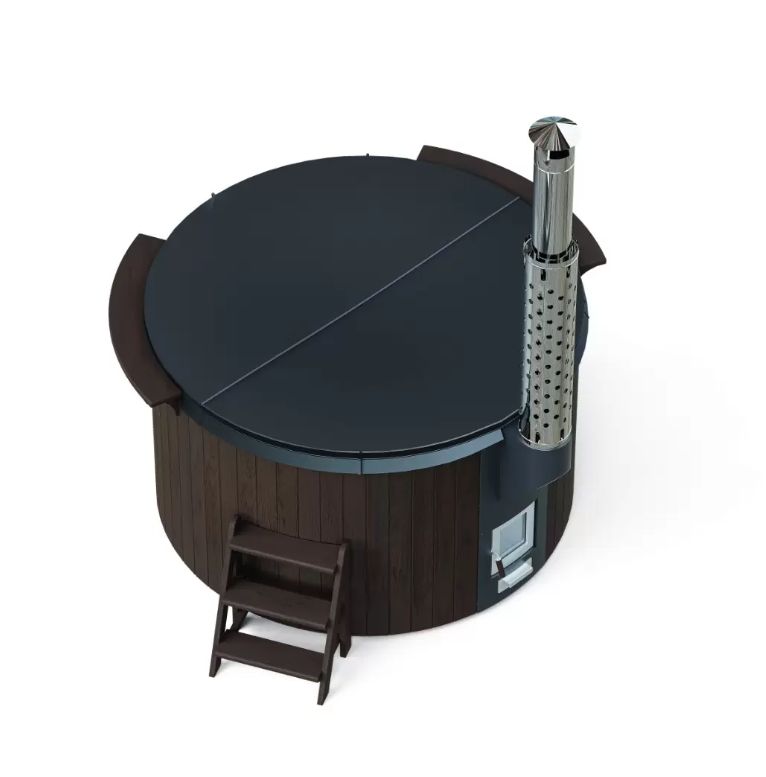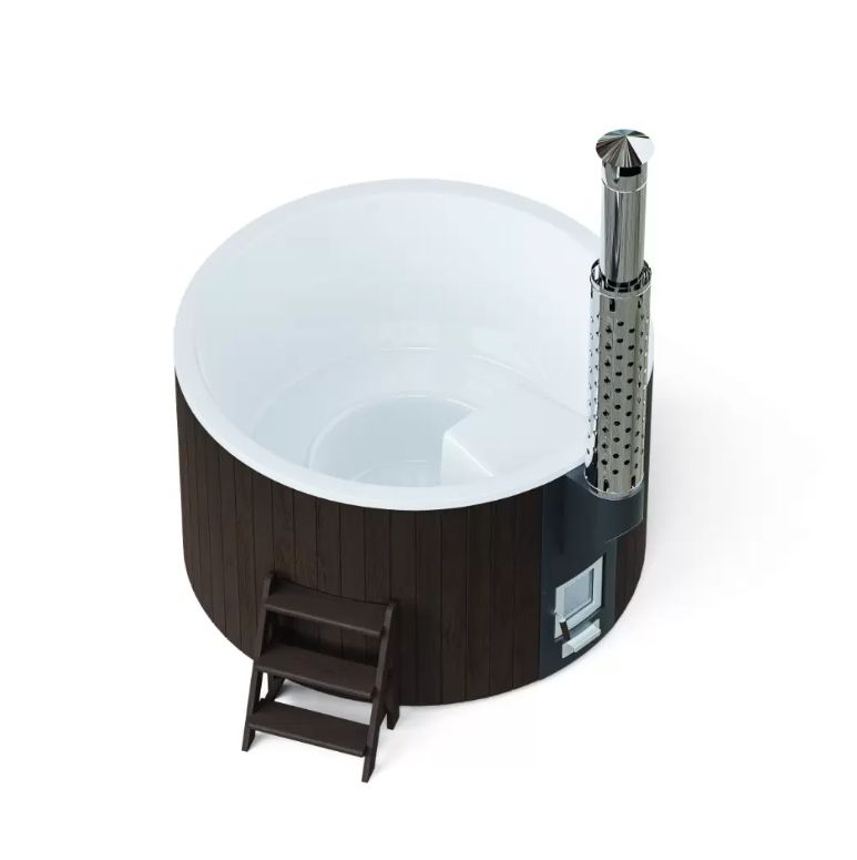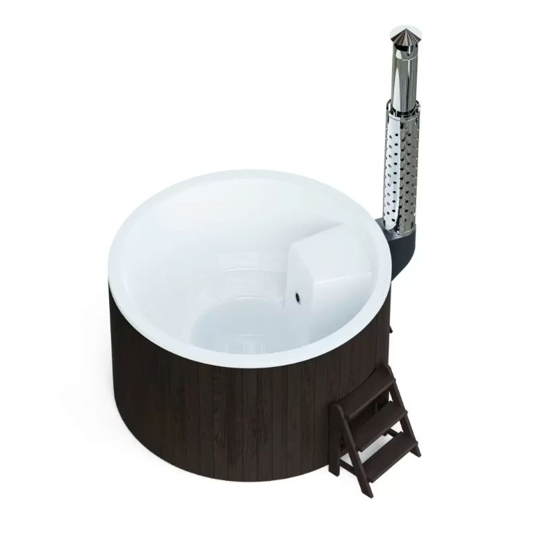 Модель полностью оправдывает свое название. Функциональность и дизайн изделия призваны сделать отдых премиальным. Чаша выполнена из высококлассного многослойного композита, а дополнительные защитные и декоративные свойства ей придает инновационное покрытие — гелькоут немецкой компании BUFA. Обшивку изготавливаем из экологичной термососны приятных оттенков. Выбирайте темный или светлый вариант, чтобы купель органично вписалась в дизайн окружающего пространства.