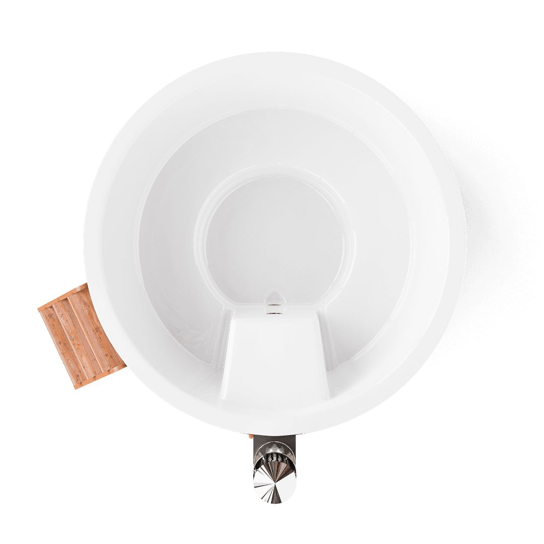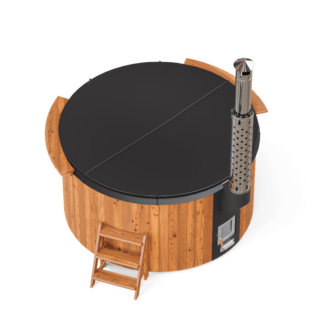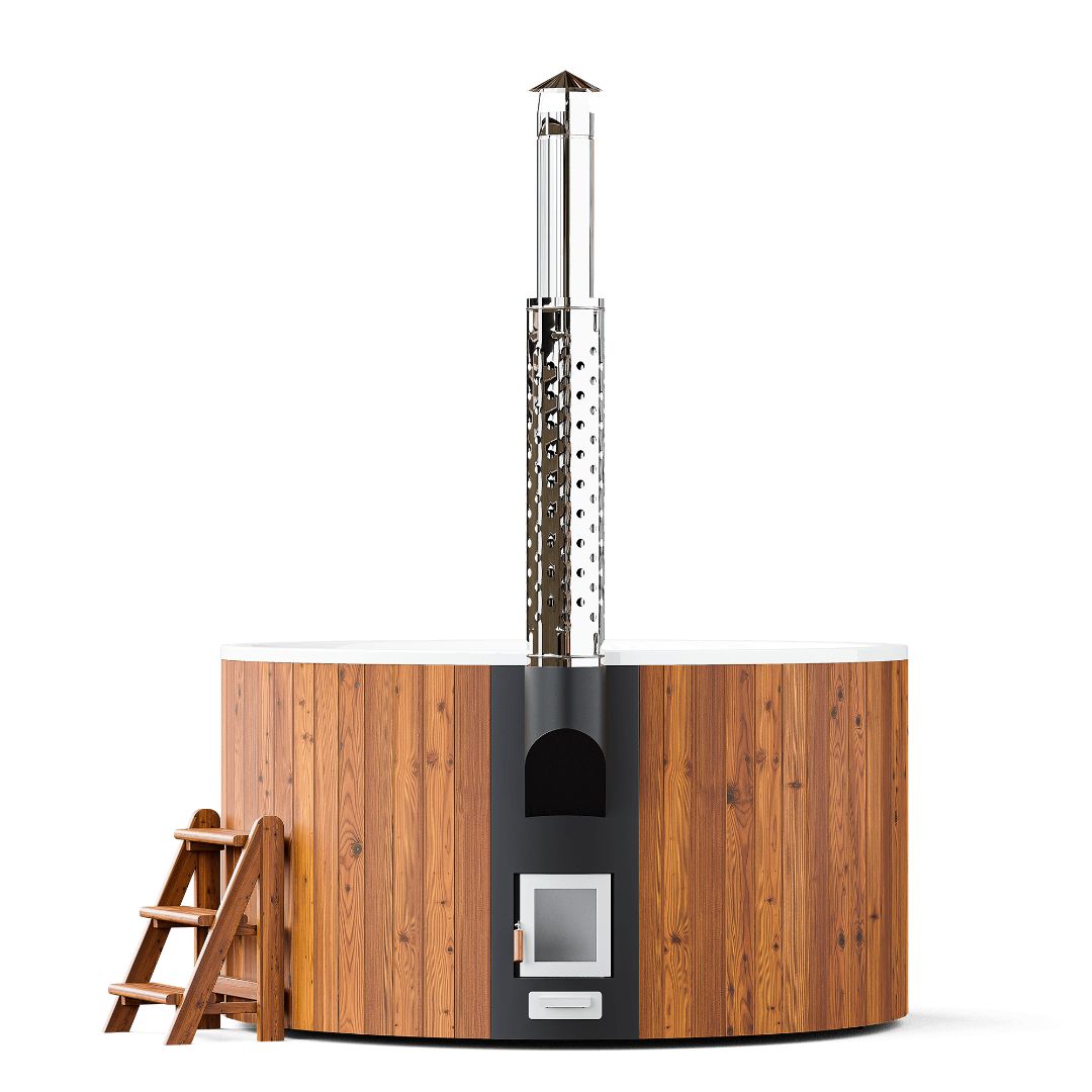 Модель полностью оправдывает свое название. Функциональность и дизайн изделия призваны сделать отдых премиальным. Чаша выполнена из высококлассного многослойного композита, а дополнительные защитные и декоративные свойства ей придает инновационное покрытие — гелькоут немецкой компании BUFA. Обшивку изготавливаем из экологичной термососны приятных оттенков. Выбирайте темный или светлый вариант, чтобы купель органично вписалась в дизайн окружающего пространства.
