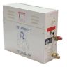 Парогенератор 6 кВт, Объём помещения до 10 м3. Выносной пульт, датчик температуры, форсунка в комплекте. По своей конструкции и типу выработки пара все парогенераторы схожи и разделяются на три основных типа нагрева воды: с помощью электрических тэнов, нагрев воды с помощью электродов и самый экзотический - газовый. Тэновый способ нагрева воды всем нам знаком, простой пример из бытовой ситуации – электрочайник. Парогенератор в хамаме выполняет роль печи в русской бане. Чтобы подобрать парогенератор для хамама вам надо рассчитать какой мощности должно быть устройство. Это можно рассчитать по формуле: объем парной хамама (м3) * (Коэффициент 1) * (Коэффициент 2) = Мощность парогенератора для хамамов (кВт). В данной формуле Коэффициент 1 принимает значение 0,75 для вентилируемых помещений и 0,52 — для невентилируемых помещений. Коэффициент 2 принимает значение: 1 — для парной, отделанной акрилом; 1,25 — для парной, отделанной специальными панелями и плиткой (мозаикой); 1,5 — для парной, отделанной бетонными стенами с элементами мозаики. Если есть необходимость в парогенераторах большой мощности, то можно один мощный парогенератор заменить несколькими маломощными из расчета итоговой суммарной мощности парогенератора.Похожие товары